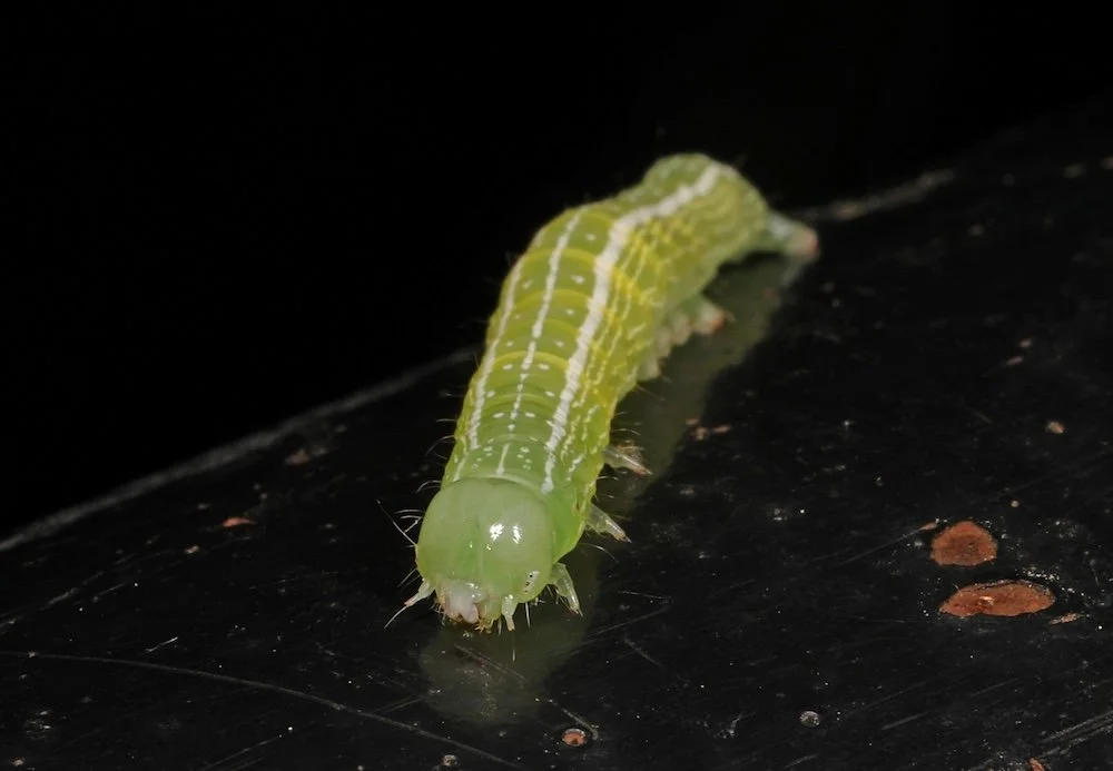 Intractable Quaker caterpillar - the little black dots on its head are stemmata. Judy Gallagher
