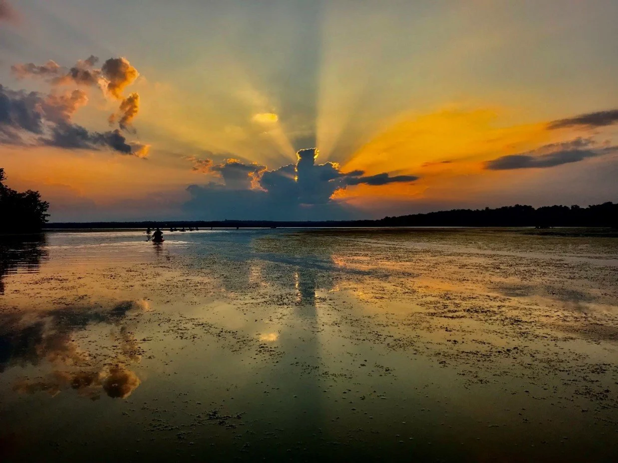 Kayaking into crepuscular rays, Jerry Nissley