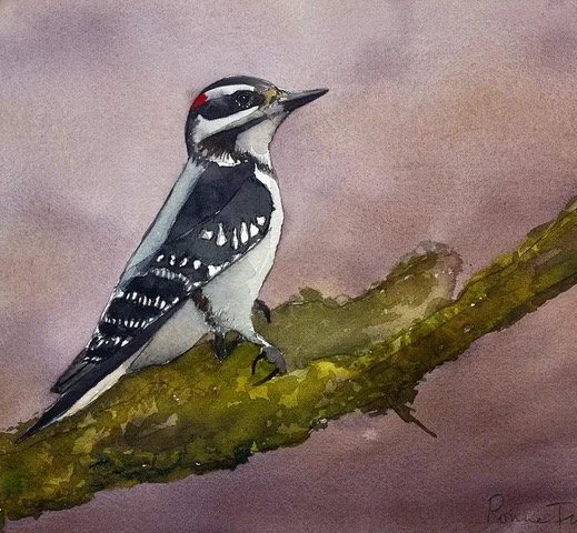 Downy Woodpecker. Painting by Ronna Fujisawa