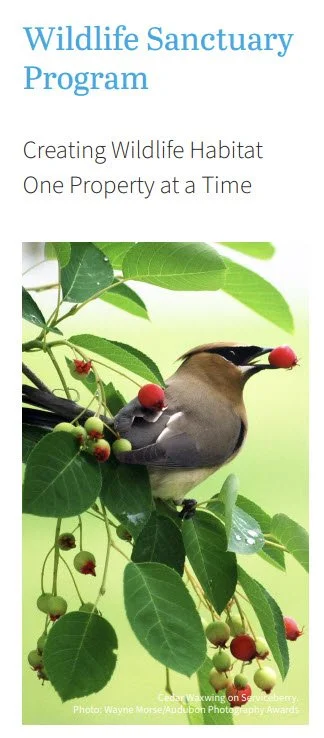 If you live in an apartment or townhouse with a balcony, patio, or very small yard, you may like to use your outdoor space to connect to the natural world around you. In order to attract and support native wildlife in these settings, a garden comprised largely of native plants in containers or small planting areas provides an attractive and simple solution. A surprising number of insects, birds and even small mammals are drawn to container and pocket gardens. The Audubon at Home program encourages you to beautify and increase the wildlife value of these small spaces. Although much of this content is directed to container gardening, patios and “pocket gardens” are merely larger extensions of the same concept, with the possible advantage of natural soils that need less additional replenishment. See pdf document.